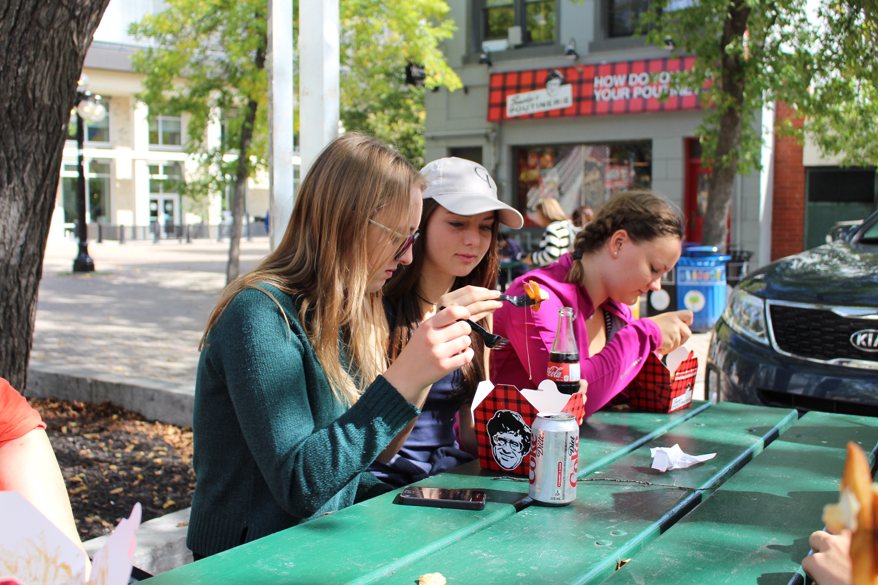 Am Mittag gab es dann ein kanadisches Nationalgericht zu entdecken - Poutine. Das Grundmuster: Fritten mit Bratensoße, obendrauf mit weichem Käse, der so langsam zerläuft... Auch in diesem Jahr fand sich niemand, dem dieses kurios scheinende Gericht nicht geschmeckt hätte.