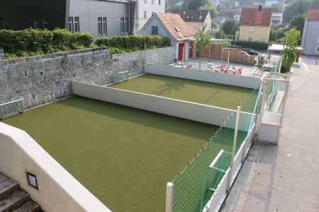 Die Soccerplätze und die Kletterwand sind in allen Pausen und vor dem Unterricht geöffnet. Bei den Soccerplätzen gibt es auch die Möglichkeit schul- und klasseninterne Fußballturniere zu veranstalten. Daneben befindet sich der Bereich für die bewegte Pause, in der Schüler Sportgeräte, wie beispielsweise Federballschläger, ausleihen können.